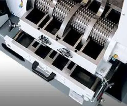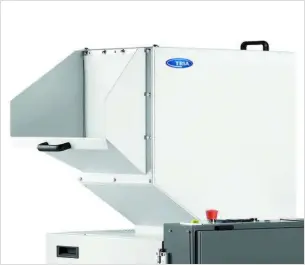Máquinas sem grelha que trabalham em baixas rotações, ideais para a moagem de canais e peças injetadas com polímeros rígidos. Garantem uma granulometria uniforme, sem materiais longos e pó. Baixíssimo nível de ruído e praticamente isento de manutenção.